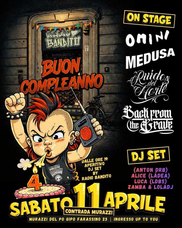 Radio Bandito compie quattro anni e festeggia con una serata speciale di musica dal vivo! 🎊🏴‍☠️ Si festeggia anche il compleanno della nostra giovane Heidi Rebel Adelaide 🤟🏻